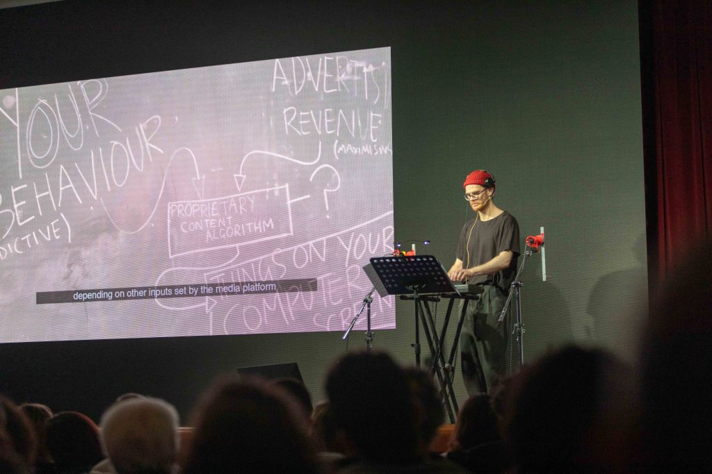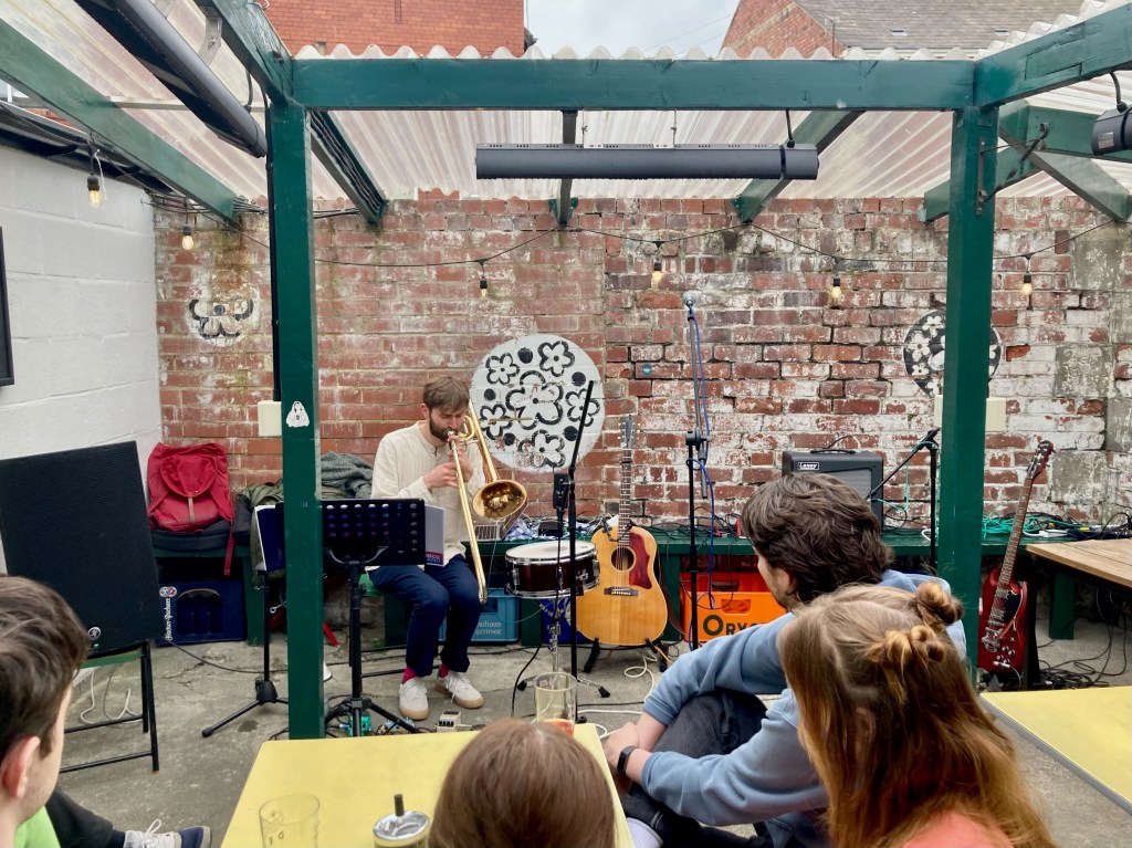 We did it! Hooray, etc. We played a set of the new record in Liverpool, London and Newcastle, and it was fun. I’d say we got better each gig, and it was a pleasure to play with such cool guests at each stop along the way. In Liverpool, we met Germanager, whose weird multicoloured iPad pop was a great fit – cheers, Ben, for making the match. Alex releases all singles, and they’re all a quid. They’re all tremendous, but if forced to pick one, I’d say that Lows is my fave. In London we got to play with Will Gardner, who did a first-ever improvised set based on his next record, which is about the hadal zone, a part of the ocean I didn’t know much about, and it was still and beautiful and eerie and absolutely slapped. The record isn’t out yet, but I made a little bootleg of a part of the performance on my phone which I have titled ‘Will transcendental gorgeous bit’, and for now that’s my favourite of his new tunes. For our last gig, in Newcastle, we had the daunting pleasure of playing after Jæd, whose furious beautiful virtuosic-with-purpose post-blues situation is one of the best things I have ever heard in the flesh. She played solo but somehow it was as if there was an entire symphony orchestra backing her up. Lucky for us, there was a 15 minute break before we played to reset the stage, and to give the audience an opportunity to forget to make a comparison between what they’d just heard and our plinky-plonky pop songs. THANK YOU TO EVERYBODY who came out, and to all of the organisers, and to Arts Council England, who helped to bankroll the affair, despite the very real Technical Difficulties they are Experiencing. Photo of the dying moments of the Newcastle show, at Cobalt Studios, below (taken by newly North Eastern Joe Bates) for now back to administering invoices and pecuniary disbursements, bc paying for petrol is the new rock & roll.