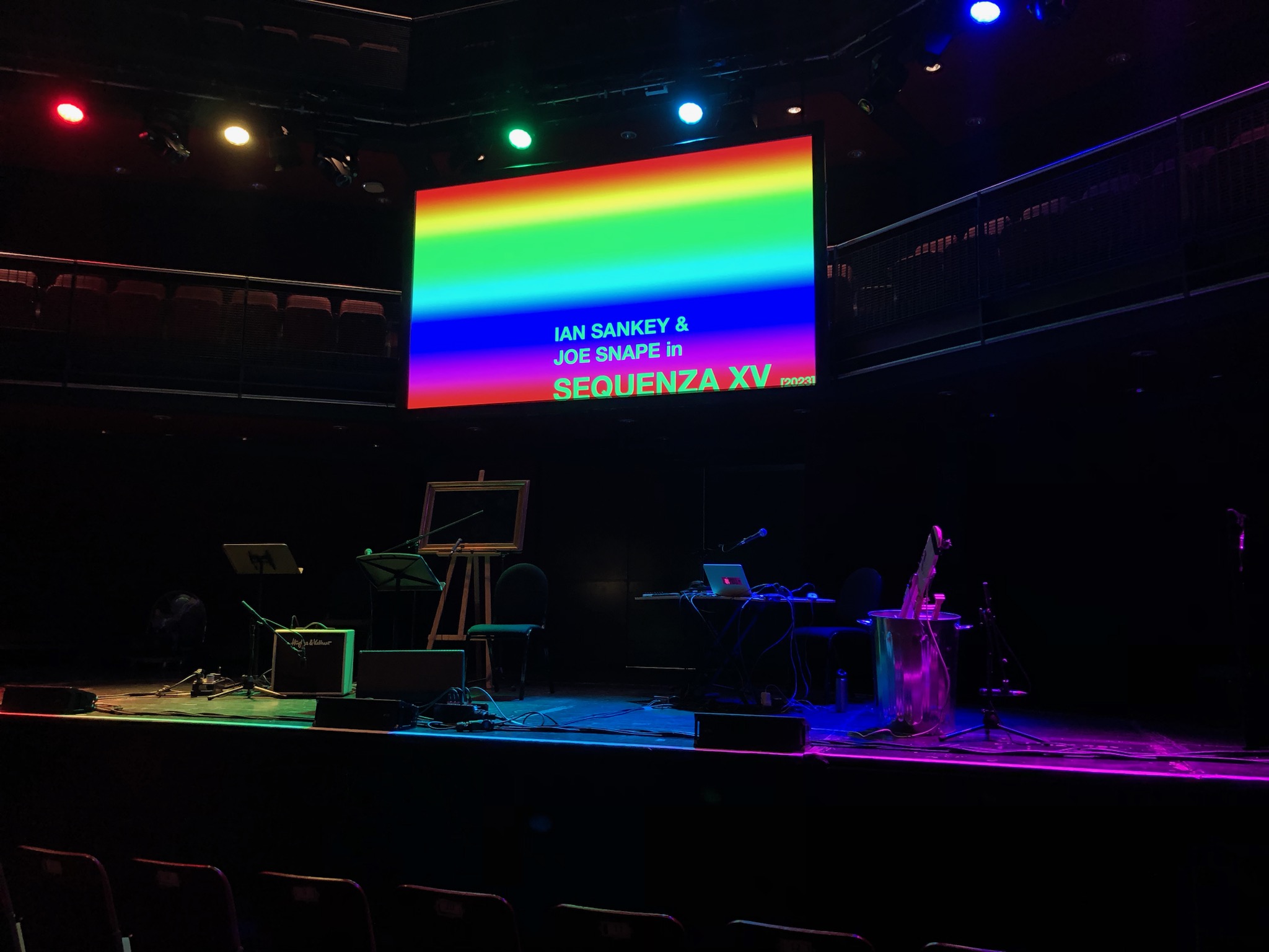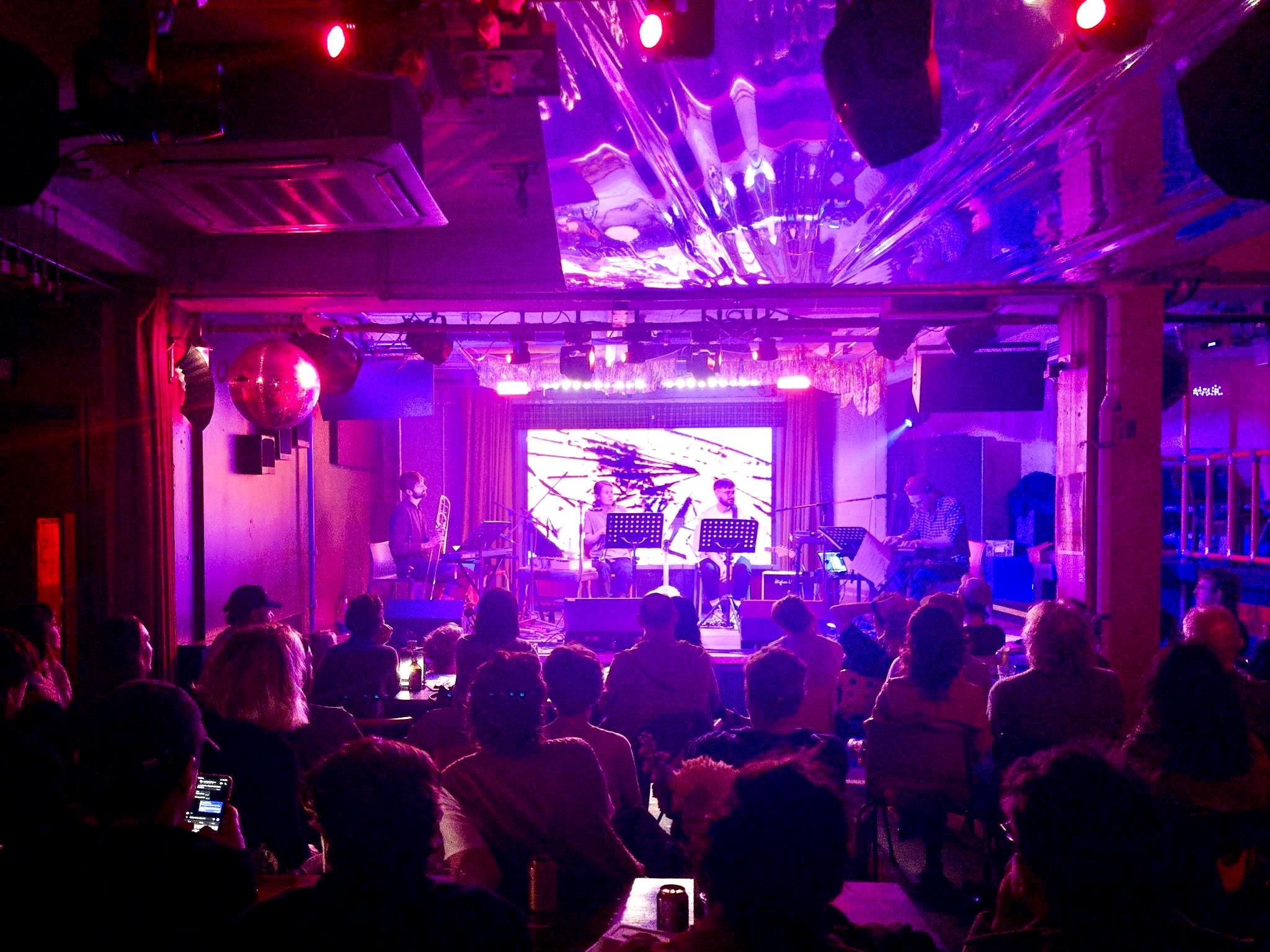 We did it! Hooray, etc. We played a set of the new record in Liverpool, London and Newcastle, and it was fun. I’d say we got better each gig, and it was a pleasure to play with such cool guests at each stop along the way. In Liverpool, we met Germanager, whose weird multicoloured iPad pop was a great fit – cheers, Ben, for making the match. Alex releases all singles, and they’re all a quid. They’re all tremendous, but if forced to pick one, I’d say that Lows is my fave. In London we got to play with Will Gardner, who did a first-ever improvised set based on his next record, which is about the hadal zone, a part of the ocean I didn’t know much about, and it was still and beautiful and eerie and absolutely slapped. The record isn’t out yet, but I made a little bootleg of a part of the performance on my phone which I have titled ‘Will transcendental gorgeous bit’, and for now that’s my favourite of his new tunes. For our last gig, in Newcastle, we had the daunting pleasure of playing after Jæd, whose furious beautiful virtuosic-with-purpose post-blues situation is one of the best things I have ever heard in the flesh. She played solo but somehow it was as if there was an entire symphony orchestra backing her up. Lucky for us, there was a 15 minute break before we played to reset the stage, and to give the audience an opportunity to forget to make a comparison between what they’d just heard and our plinky-plonky pop songs. THANK YOU TO EVERYBODY who came out, and to all of the organisers, and to Arts Council England, who helped to bankroll the affair, despite the very real Technical Difficulties they are Experiencing. Photo of the dying moments of the Newcastle show, at Cobalt Studios, below (taken by newly North Eastern Joe Bates) for now back to administering invoices and pecuniary disbursements, bc paying for petrol is the new rock & roll.
