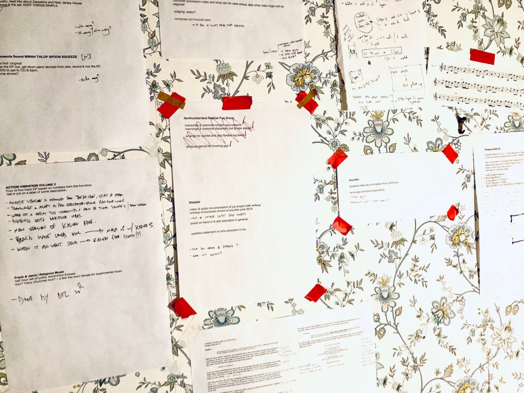 I called the number back, and a friendly voice informed me that the foundation she represented would like to gift me an ACTUAL REAL-LIFE AWARD for making funny tunes and oddball pieces. Convinced this was an updated version of the Nigerian Prince scam, I waited for the catch… Just what proportion exactly of my nan’s retirement would I have to send her to unlock this ‘award’? Unbelievably, none whatsoever! And so it transpires that for the coming year, I am honoured and grateful to be one of the recipients of the Paul Hamlyn Foundation’s awards for artists in the composition section (or department?). This is particularly exciting because I have a foot-long list of odd, small pieces to write that I think would be tricky to attract other competitive funding for; they’re super interesting to me and I’m sure will add up to something pretty cool, but they’re not particularly flashy, and I don’t quite know the final form they’ll take yet. (Above is a photo of a wall in my house of stuff to do–there’s enough of it to take a decent while). PHF: thank you very much indeed! I now need to update that dry line in the ‘about’ section…
