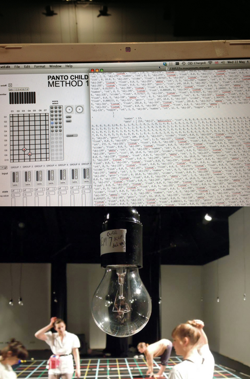 During last year’s April, Genevieve Murphy took Hannes Fritsch and I to Dance Works in Rotterdam to work with her on this new piece and it should have lightbulbs and contact mics and yeah there should be eggshells and moonboots too and loads of mini accordions and at least ten dancers and, and… Right? So we did, and a year later she’d sorted the whole thing out with two sold out dates at the iconic De Melkweg. We all went over a couple of weeks early, and did insane amounts of head-scratching in the Amsterdam rain. Almost a kilometre of cable, days spent up a crane, forty-two lightbulbs, twenty-six rolls of tape, a bunch of soundcards and a badly timed explosion later, it actually happened.